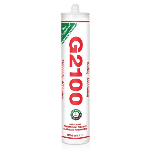 G2100 is a Single Component Acetic cure Silicone Sealant that improves its Strength and Resiliency on exposure to moisture in the air at room temperature, to produce a flexible elastomeric sealant. G2100 is suitable for all common Construction and Glazing Applications. It is easy to apply and offers Excellent Adhesion to a variety of nonporous substrates such as Glass, Glazed Ceramic Tiles, and Aluminum. It is resistant to Ozone, Ultra-violet Radiation, and Temperature Extremes.